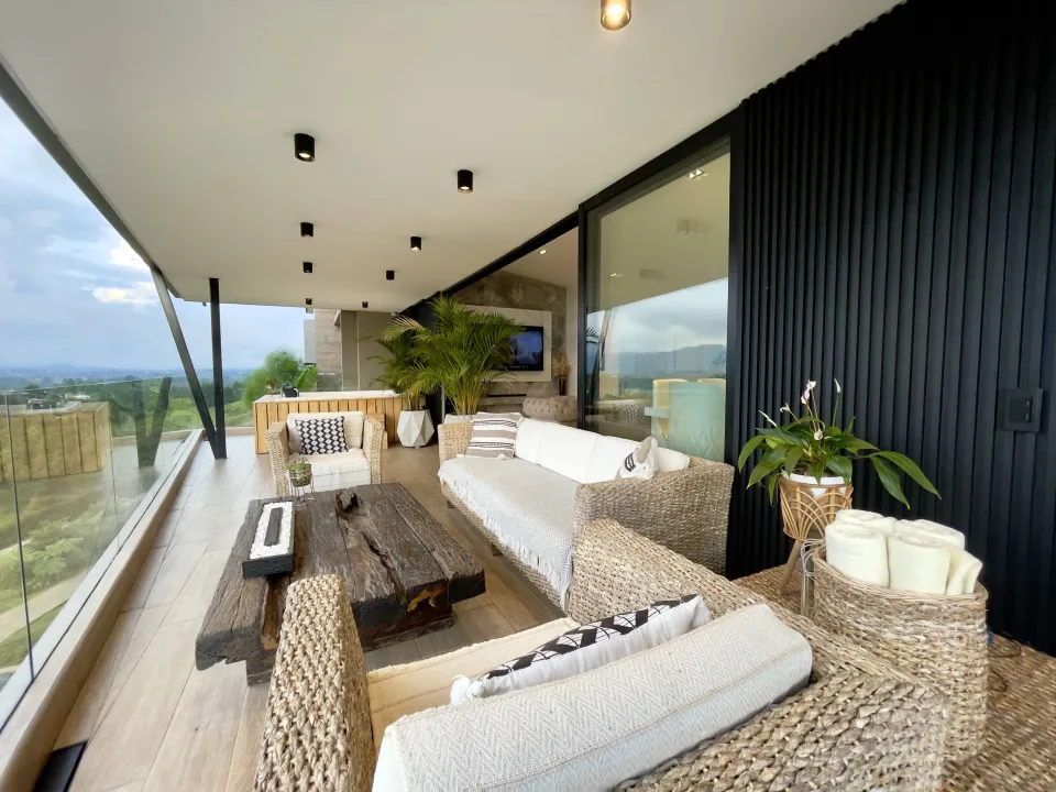 π Balcón con área social amplia y jacuzzi con vistas panorámicas a las montañas — tu espacio para atardeceres, celebraciones o simplemente respirar.